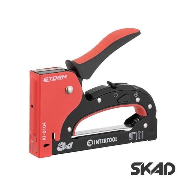 Будівельний степлер 3в1, скоба 6-14мм, шпилька 14мм, цвях 14мм Intertool RT-0104